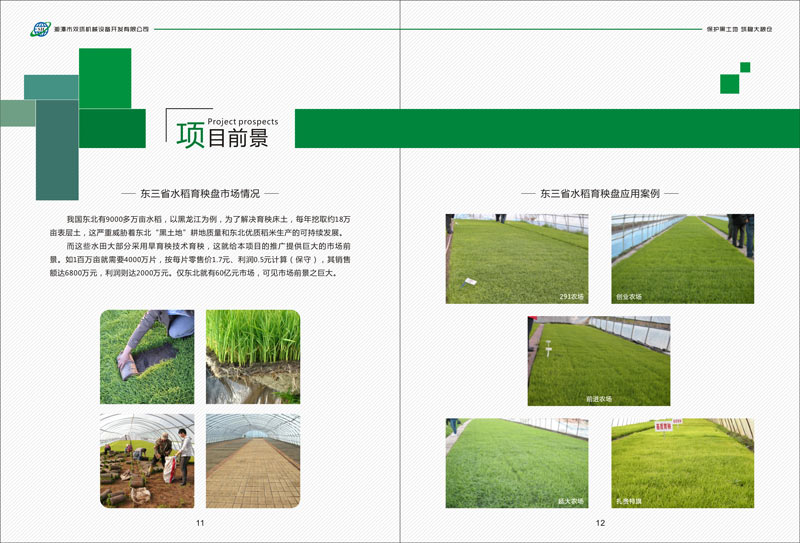 而這些水田大部分采用旱育秧技術(shù)育秧,這就給本項(xiàng)目的推廣提供巨大的市場前景。如1百萬畝就需要4000萬片,按每片零售價(jià)1.7元、利潤0.5元計(jì)算(保守),其銷售額達(dá)6800萬元,利潤則達(dá)2000萬元。僅東北就有60億元市場,可見市場前景之巨大。