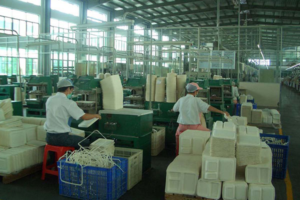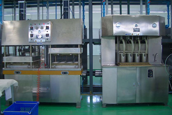 紙漿模塑一次性餐飲具生產(chǎn)線以木漿及各類草漿的漿板為原料,經(jīng)碎解、篩選、磨漿、添加化學(xué)劑等工藝調(diào)配成一定濃度的漿料,然后通過真空作用使紙漿均勻地附著在特制的金屬模具上形成濕坯制品,再經(jīng)干燥、熱壓、消毒工序生產(chǎn)出一次性紙漿模塑餐飲具制品。